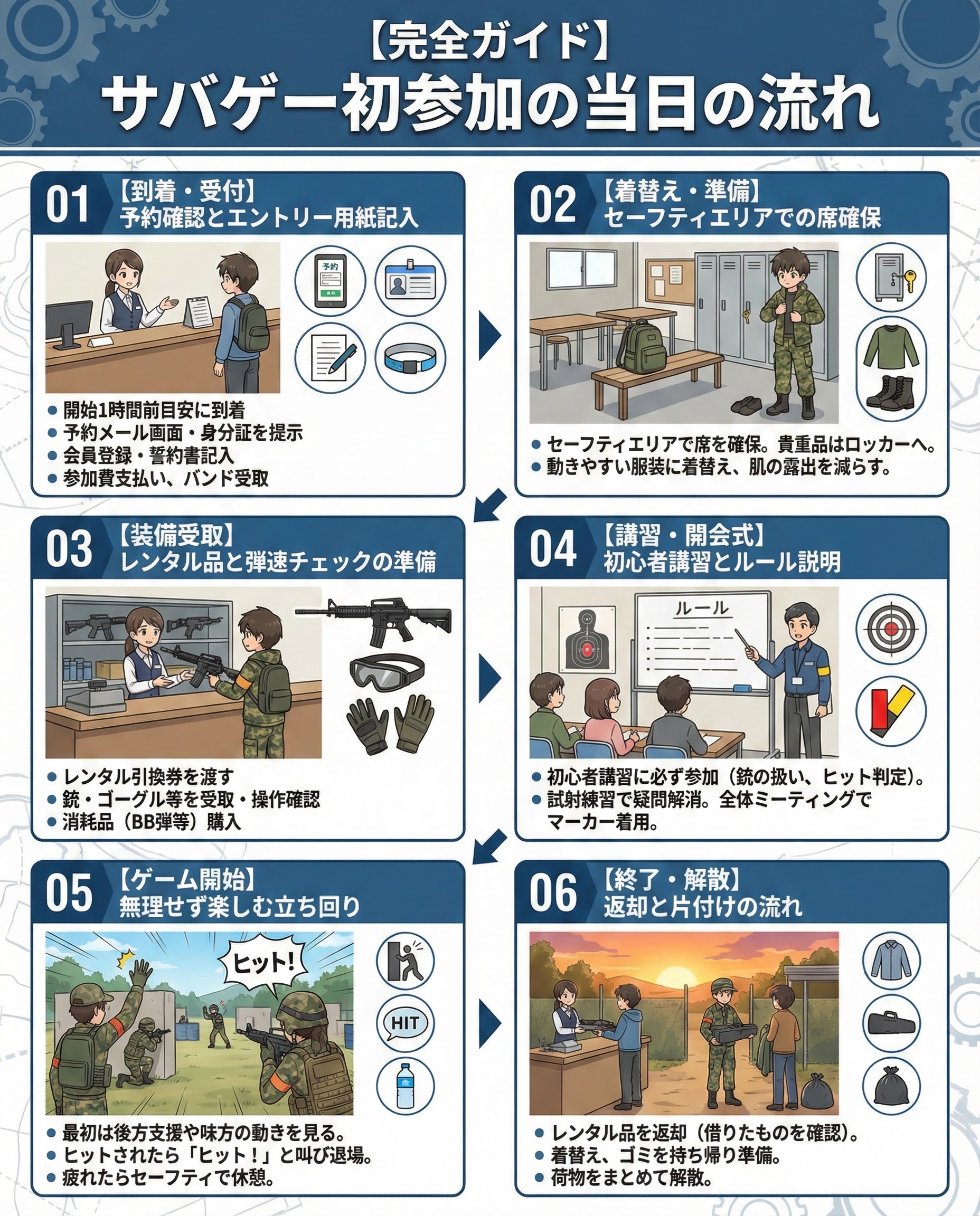 【図解でわかる】『初心者必見』サバゲー初参加の当日の流れ|受付〜ゲーム終了まで